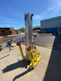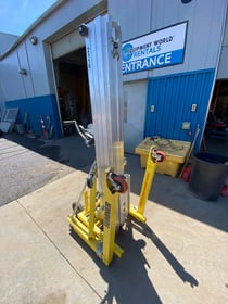 • Height: 18' (5.6m)• 650 lb capacity (300 kg)• Rolls through standard doorways & tail gates• Loading Bar - great for overhead cranes• Reversible forks• Plunger pins for quick readjustment and compact storage• No tools needed - no loose parts• Variety of attachments• Large 7/32" (5.5mm) load cable• Lockable, 5" polyurethane casters