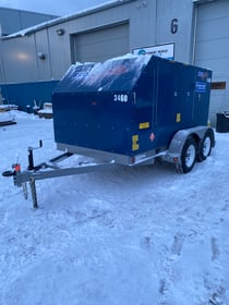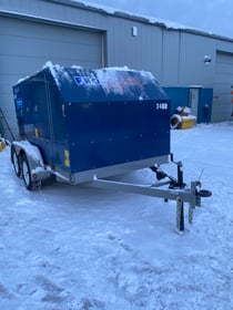 1,000,000 BTU/hr, Oil/Diesel Trailer Mounted Heater, 300 Gallon Tank, 3ft flute extension with Rain cap. Airflow of 9,600 CFM, Dry Weight 5400lbs, 16ftX8FTx6FT.