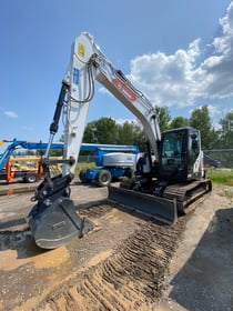 E145 Bobcat Excavator / Dozer Blade / Hydraulic Activated Pin - Grabber Attachment Quick Control.