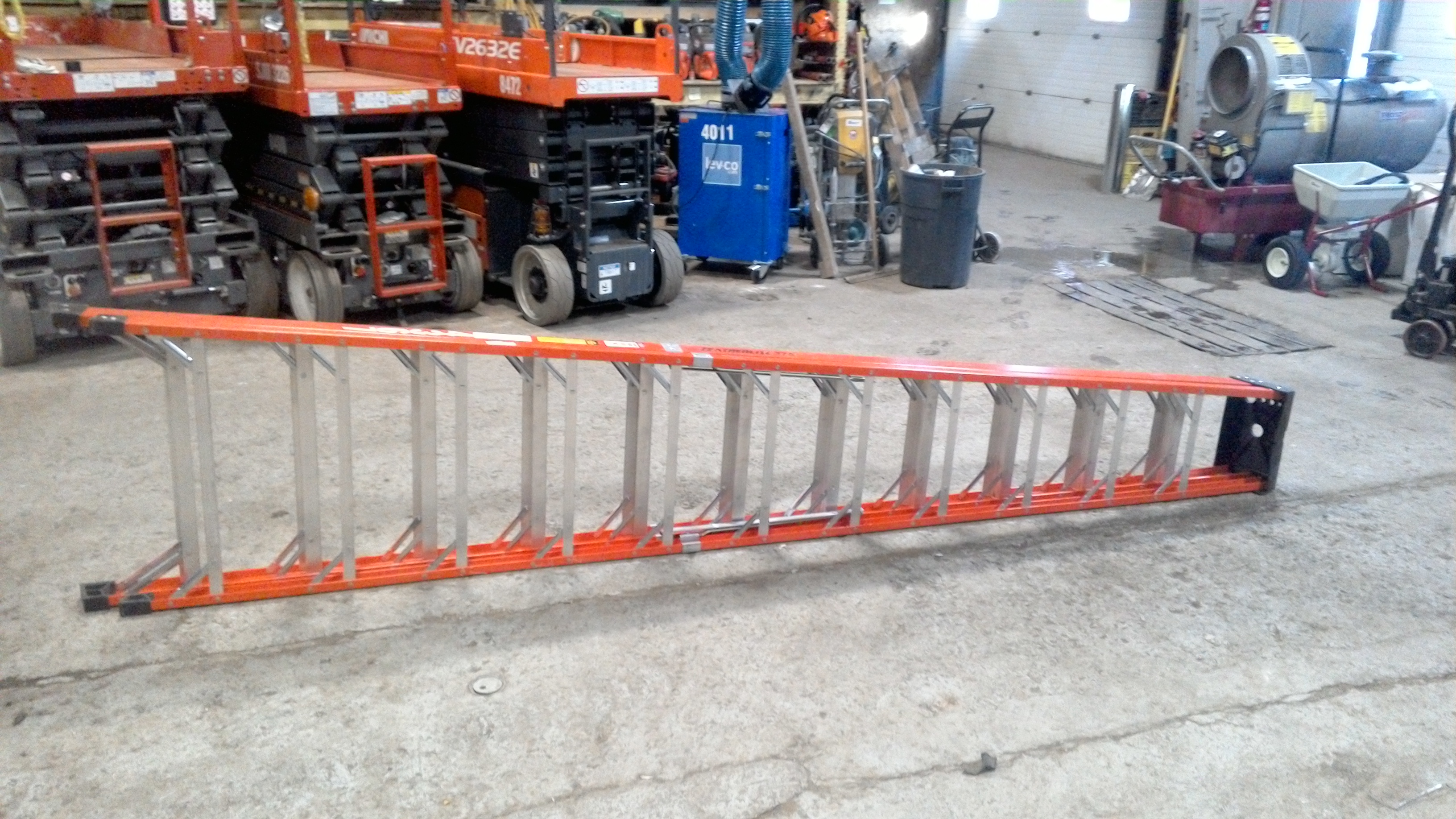 Type 1AA 12' fiberglass step ladder with 300LB load rating.