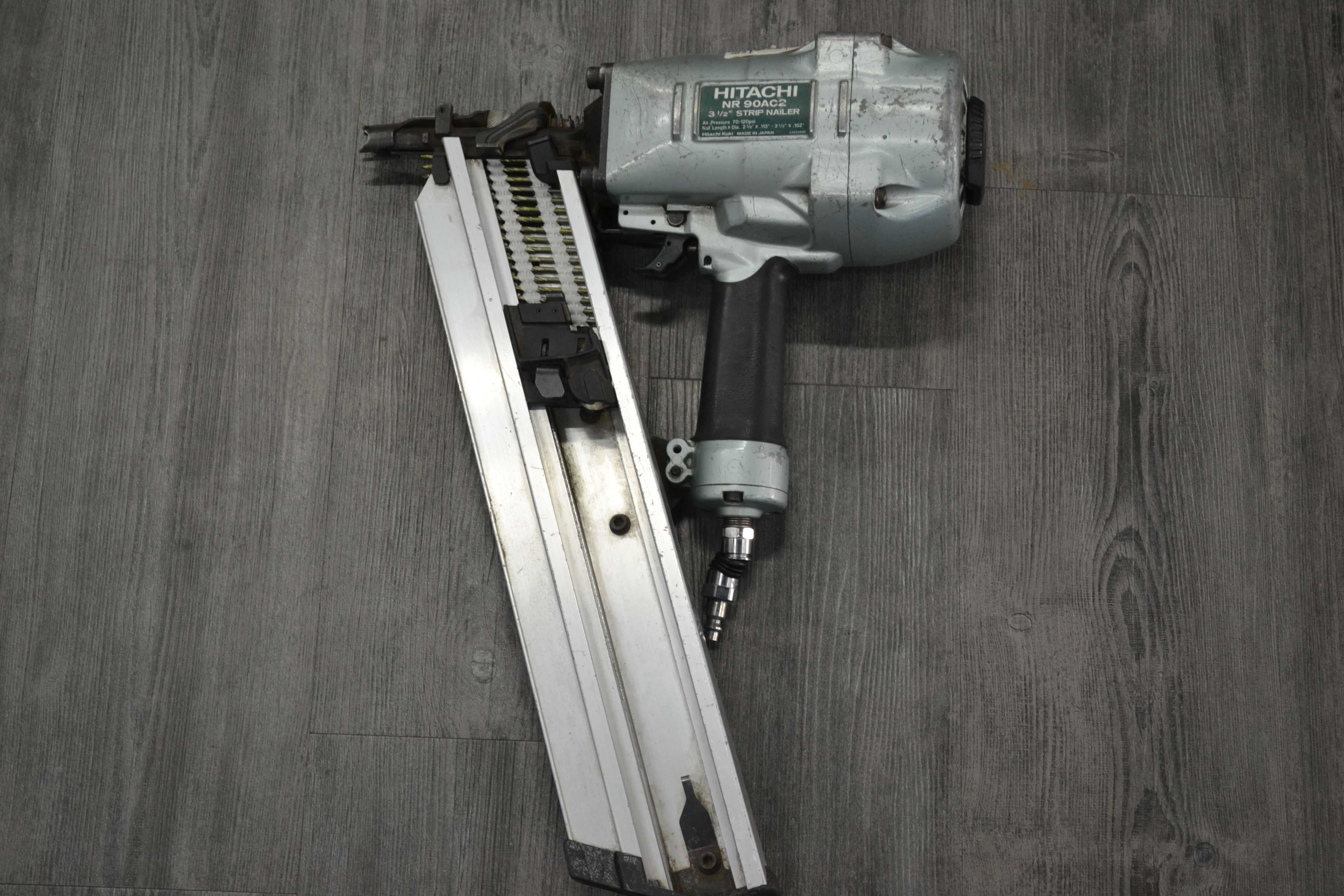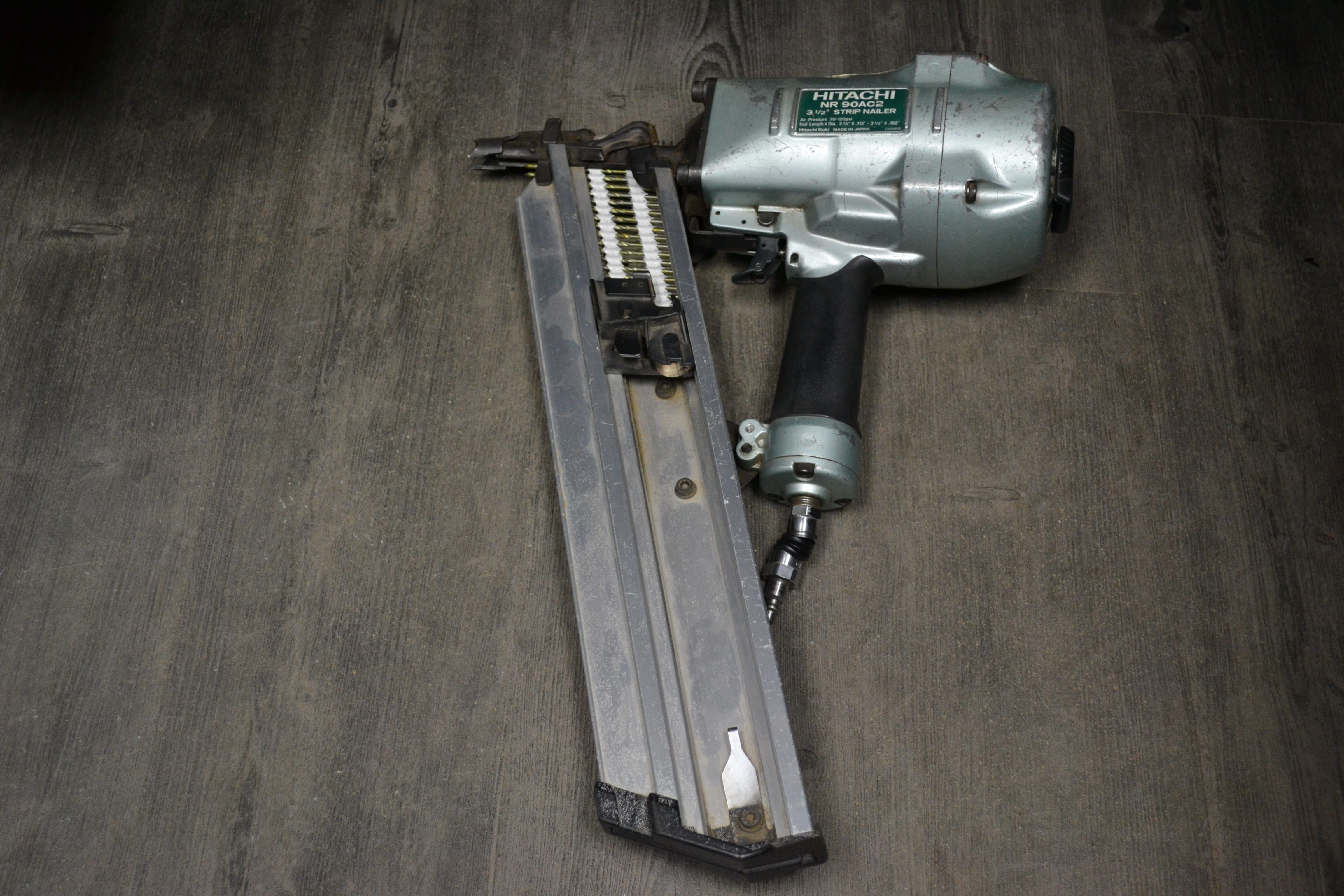 Hitachi 3 1/2" air strip framing nailer.