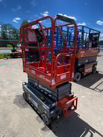 SKYJACK SJ3013: Batteries - AGM, Dual Flashing Lights, Entrance - Half Height Gate, Extension Deck - 1.7', Rails - Hinged, Tires - Non Marking.