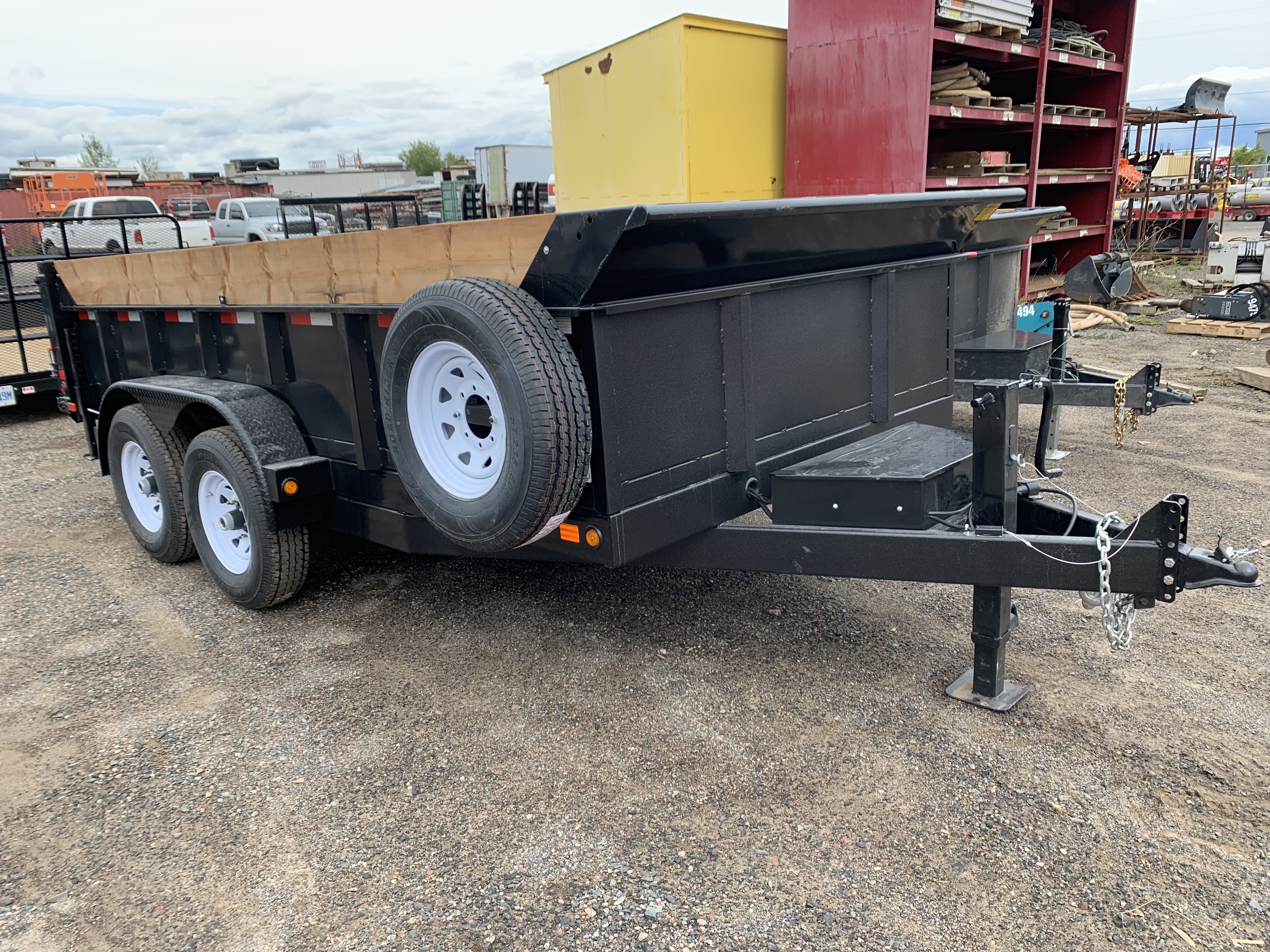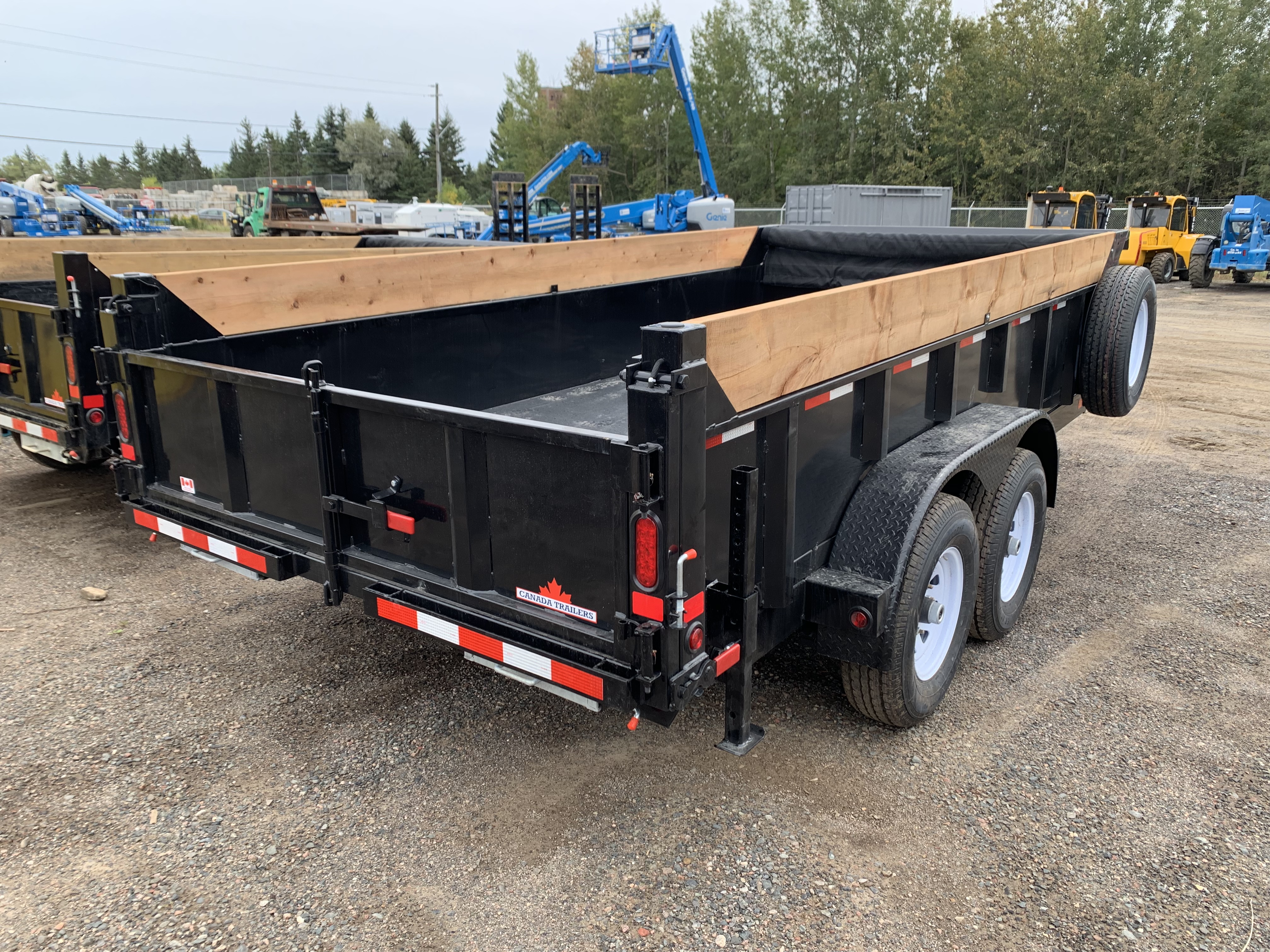 Tandem 7,000 lbs. Drop Axles – GVWR 14,000lbsElectric Brakes on Both AxlesSlipper Spring SuspensionBarn Doors with Cam LockTwo-way Gate12,000 lbs. Drop Leg JackLockable Steel ToolboxInterstate Extreme Cycle BatteryKey FOB – Remote to Dump3,000 psi Hydraulic Pack20’ Hand Remote5” Hydraulic Cylinder & Scissor Hoist22” Steel + 11” Wood PlankShielded Tarp & Roller(Qty 4) Heavy Duty D-RingsAdjustable 2-5/16” Coupler or 3” Lunette EyeSpare Tire Mount – Passenger’s Side Of BoxSand Blasted & Phosphate EtchedPowder Coated + Scorpion Stone GuardSteel FloorSealed Beam, L.E.D. Lights & Sealed Harness SystemTransport Canada & DOT Approved Lighting