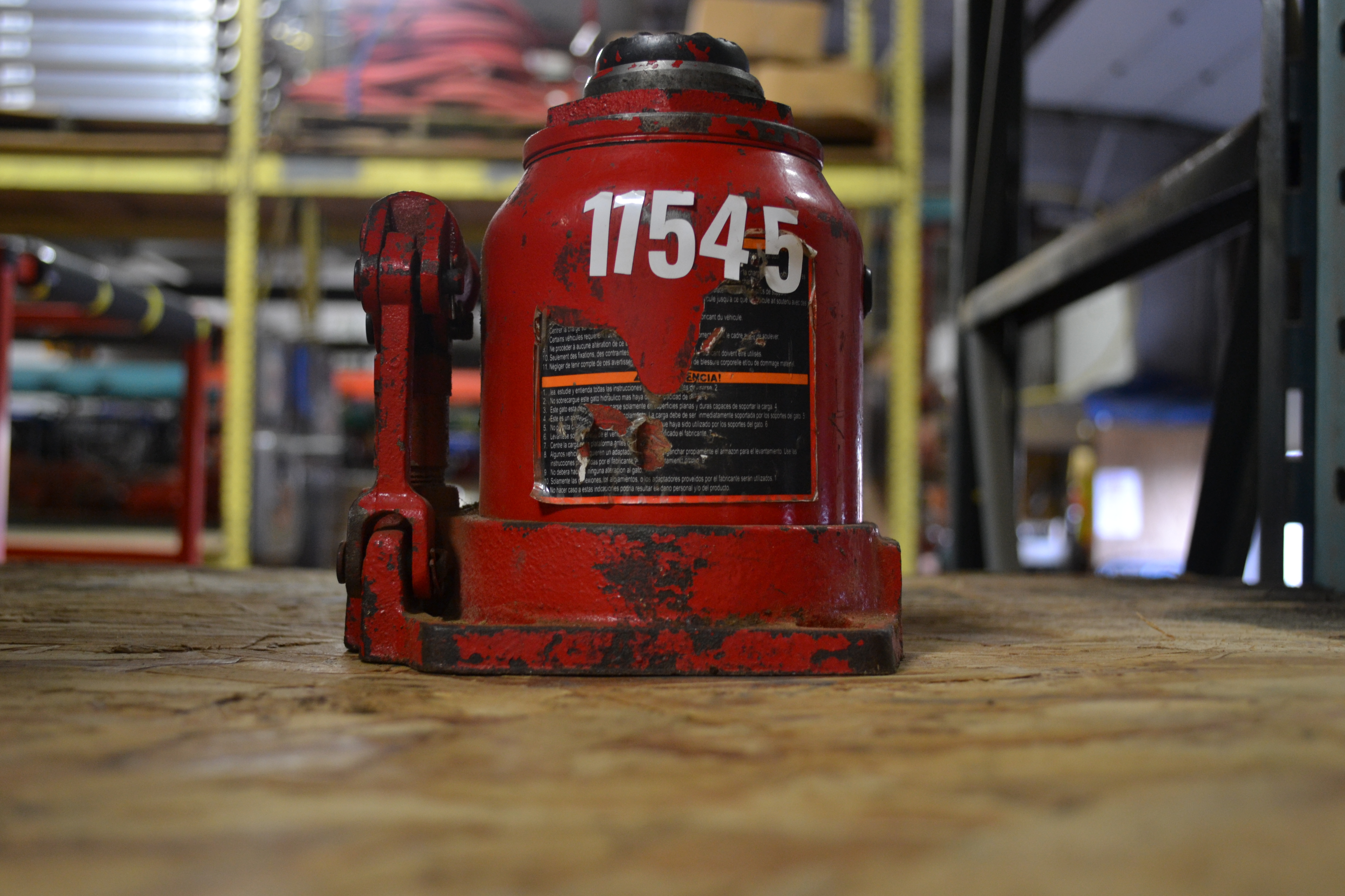 Old red hydraulic jack.