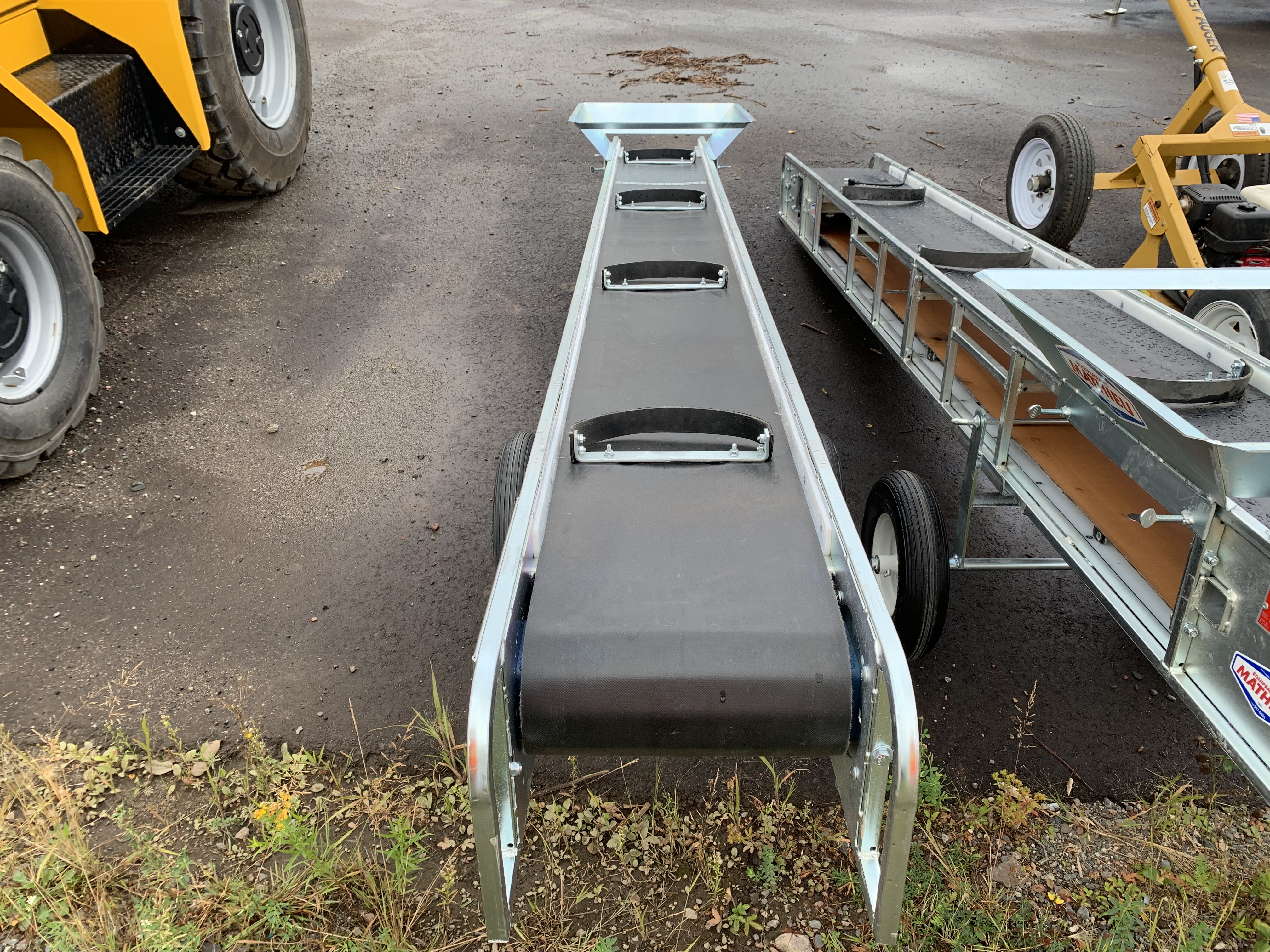 Conveyor, portable 12', 13" belt, 1/3hp 120V, hopper, wheel.