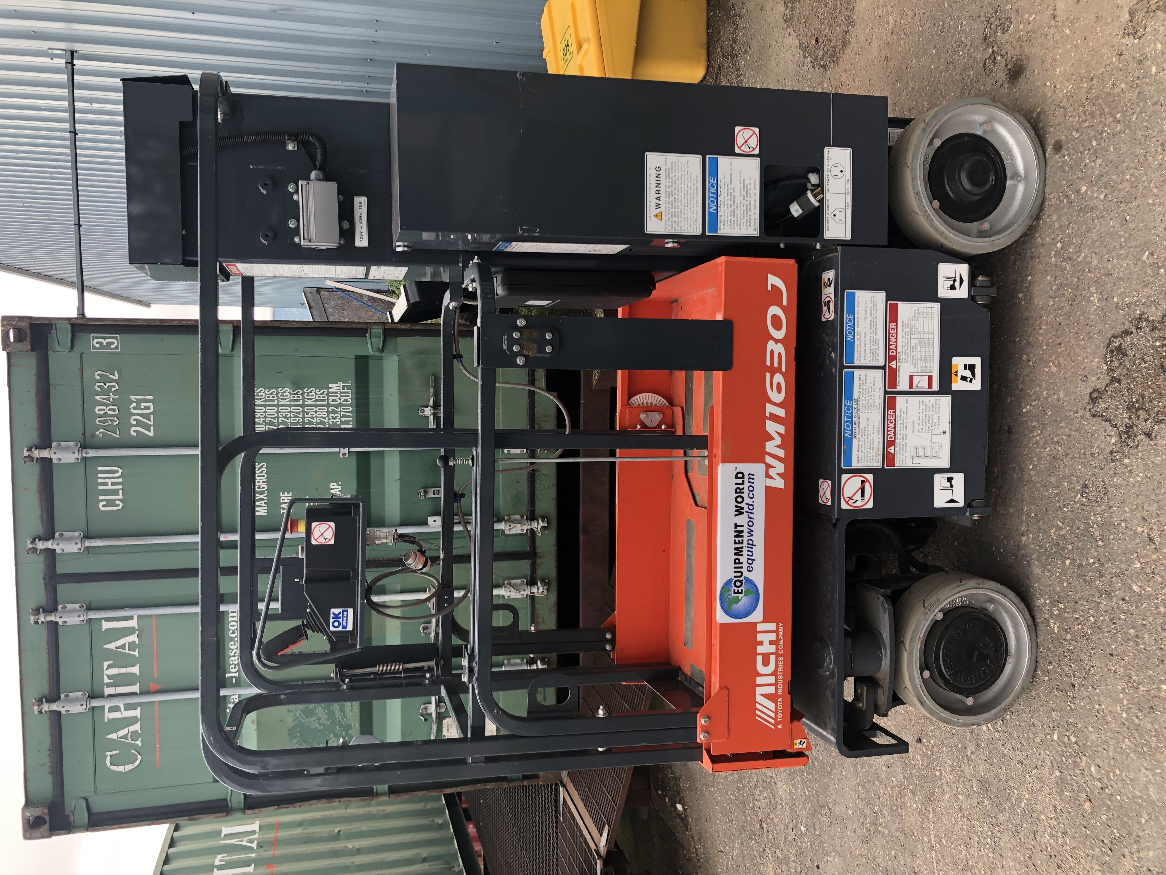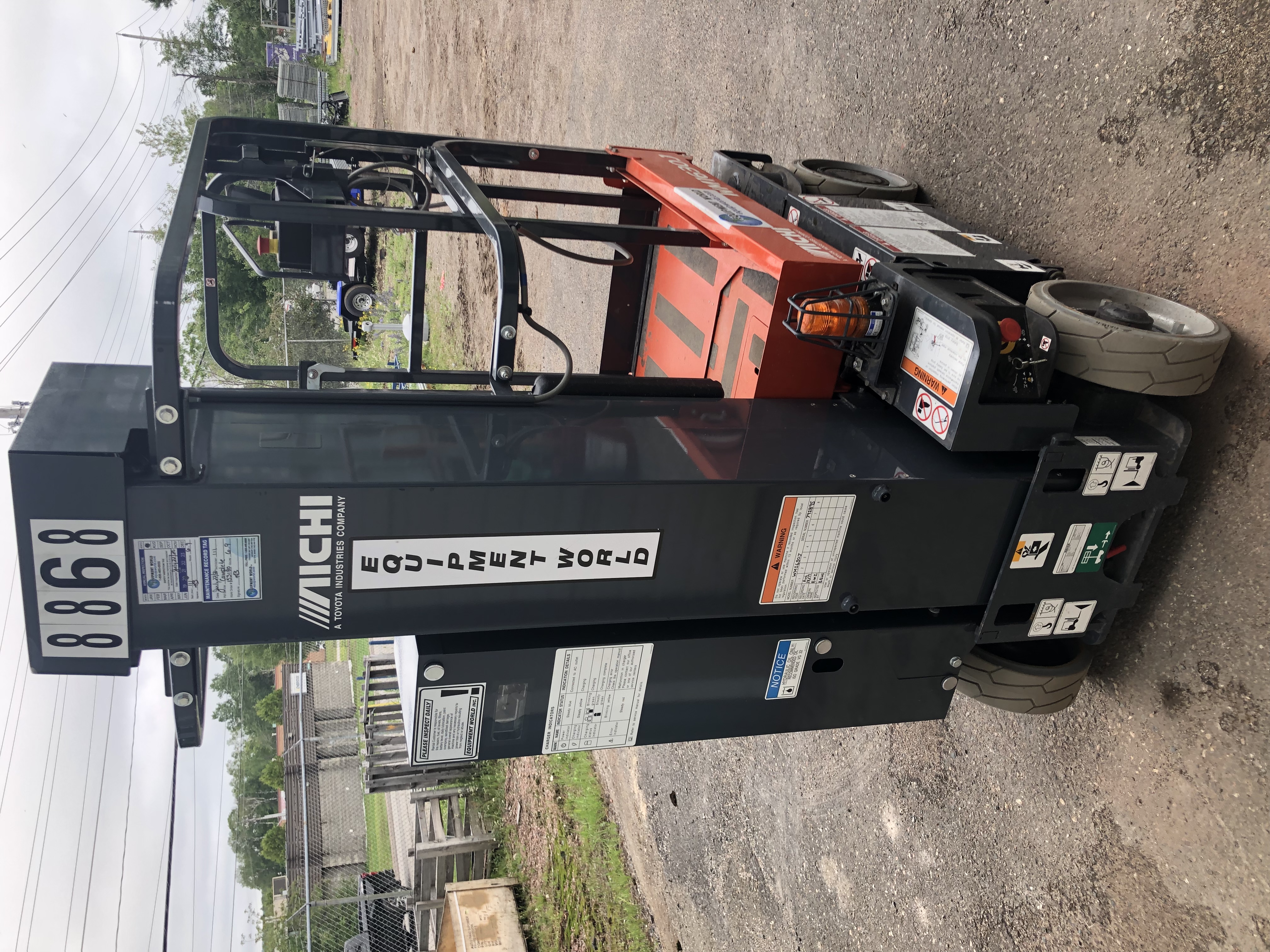 Aichi New Vertical Mast Lift / 16 ft. Platform Ht. x 30" W/ Solid Non-Marking Tires/ Elec. Battery Powered/ 24 V. AC Drive System/ Fire Ext/ LED Strobe Light