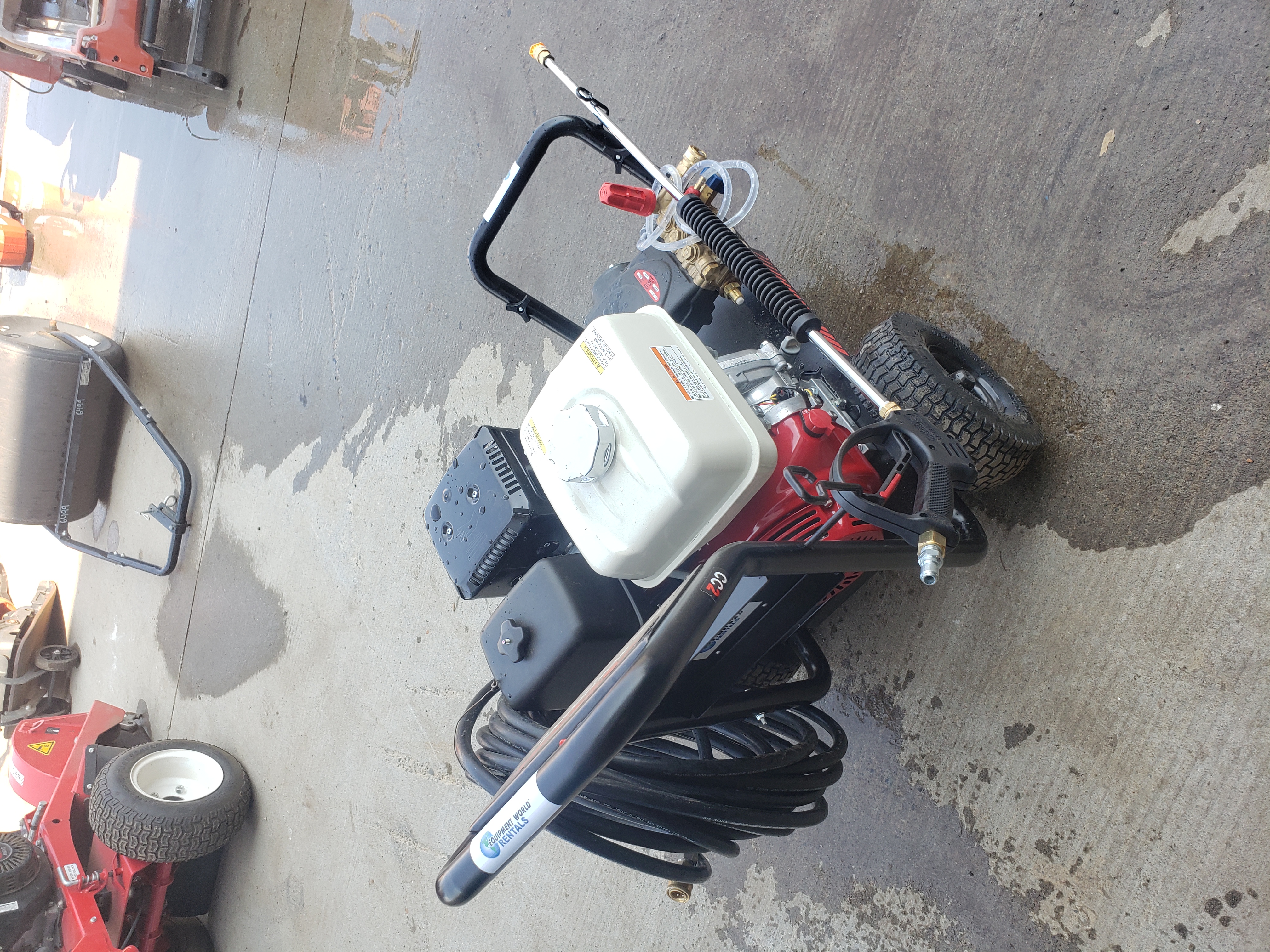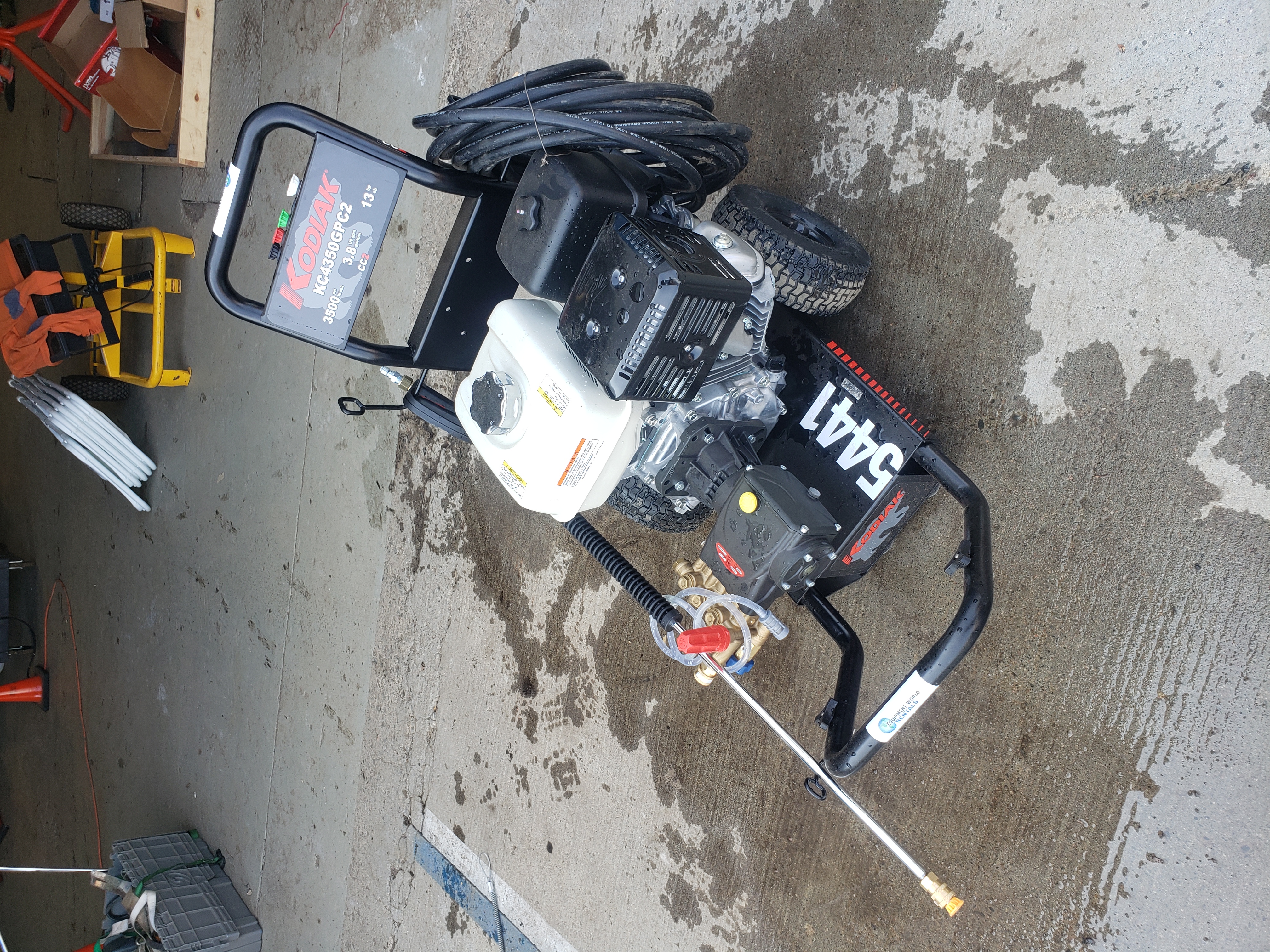 Operating Pressure: 3,500 PSI Volume: 3.8 GPM Motor: 13 HP Honda GX390 Pump Speed: 3,600 RPM Dimensions: 33″ x 23″ x 26″ Weight: 155 LBS Hose Length: 50 Ft.