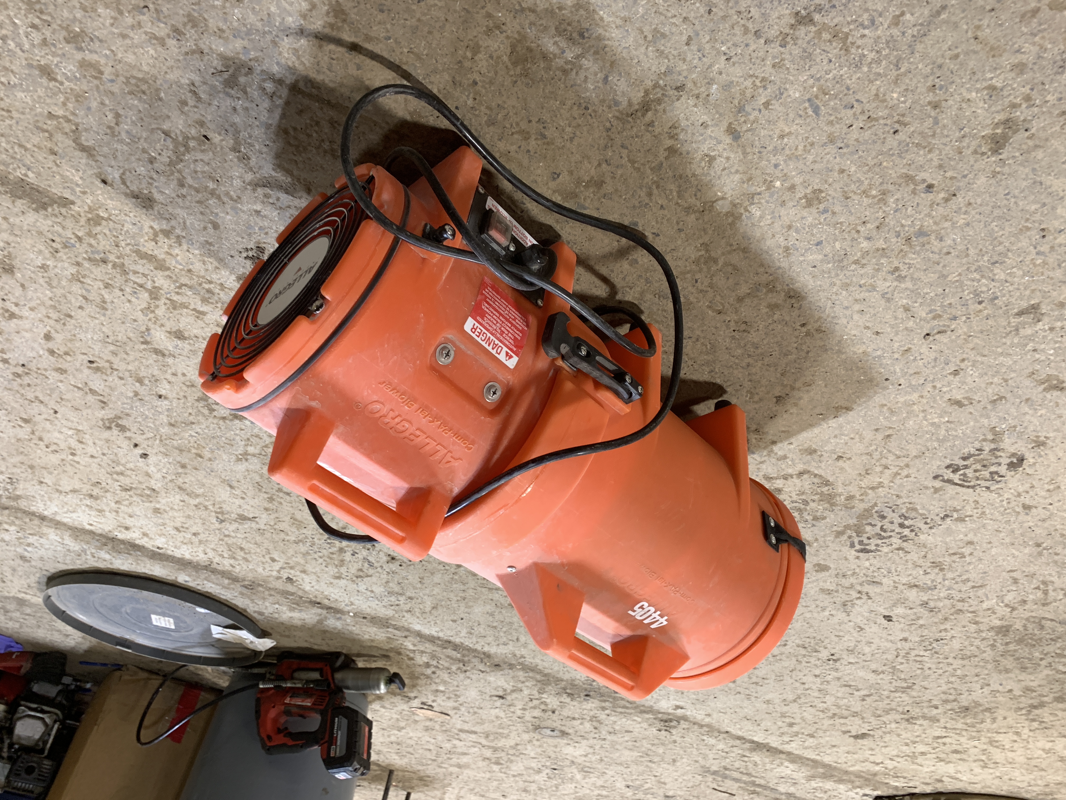 Allegro space ventilator fan Free Air Flow 831 CFM, Horsepower 1/3 HP, RPM 3400, Switch On/Off Rocker, Amps 4.5 - 2.2, Cord 20', Weight 33 LBS.