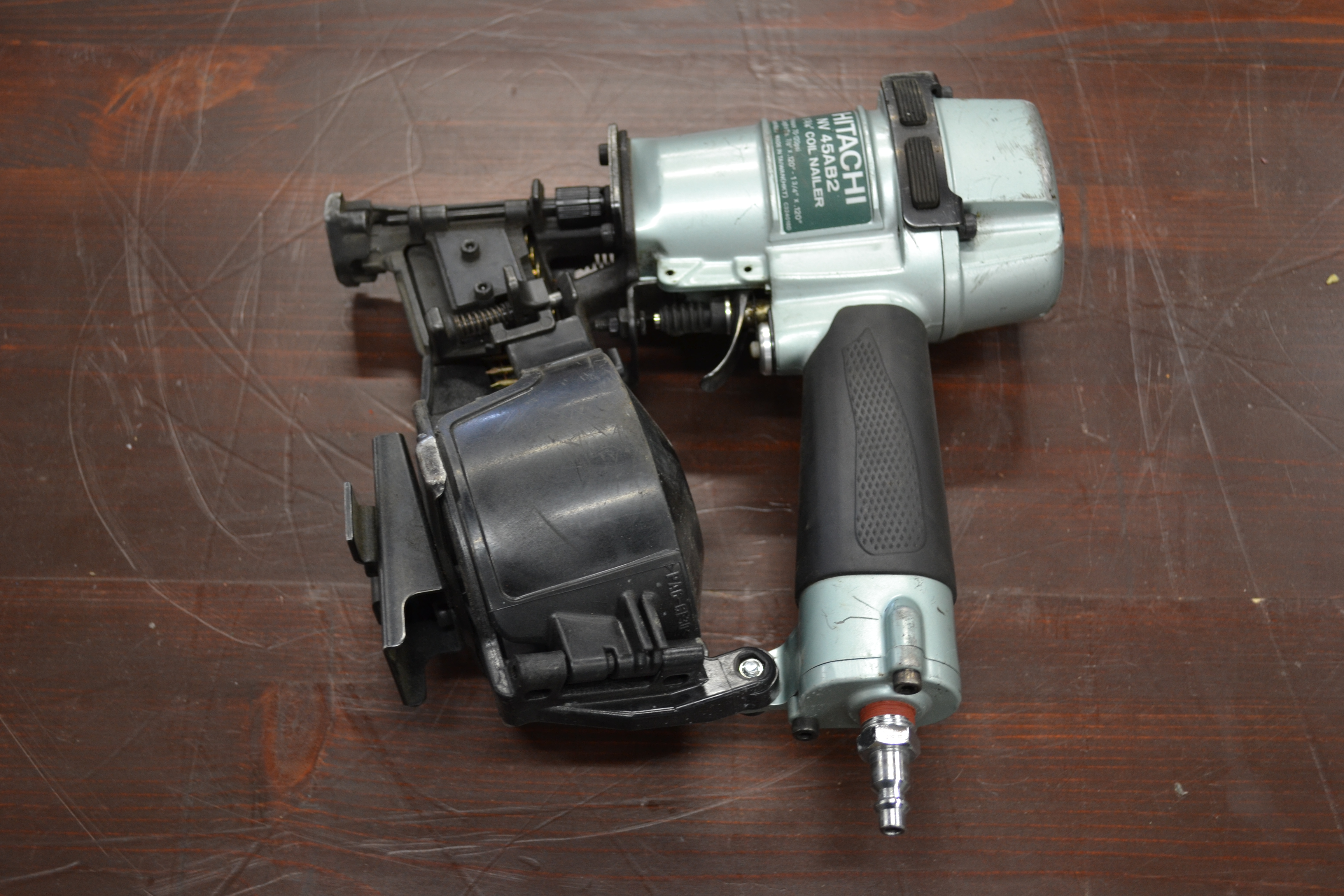 Silver and black Hitachi coil nailer