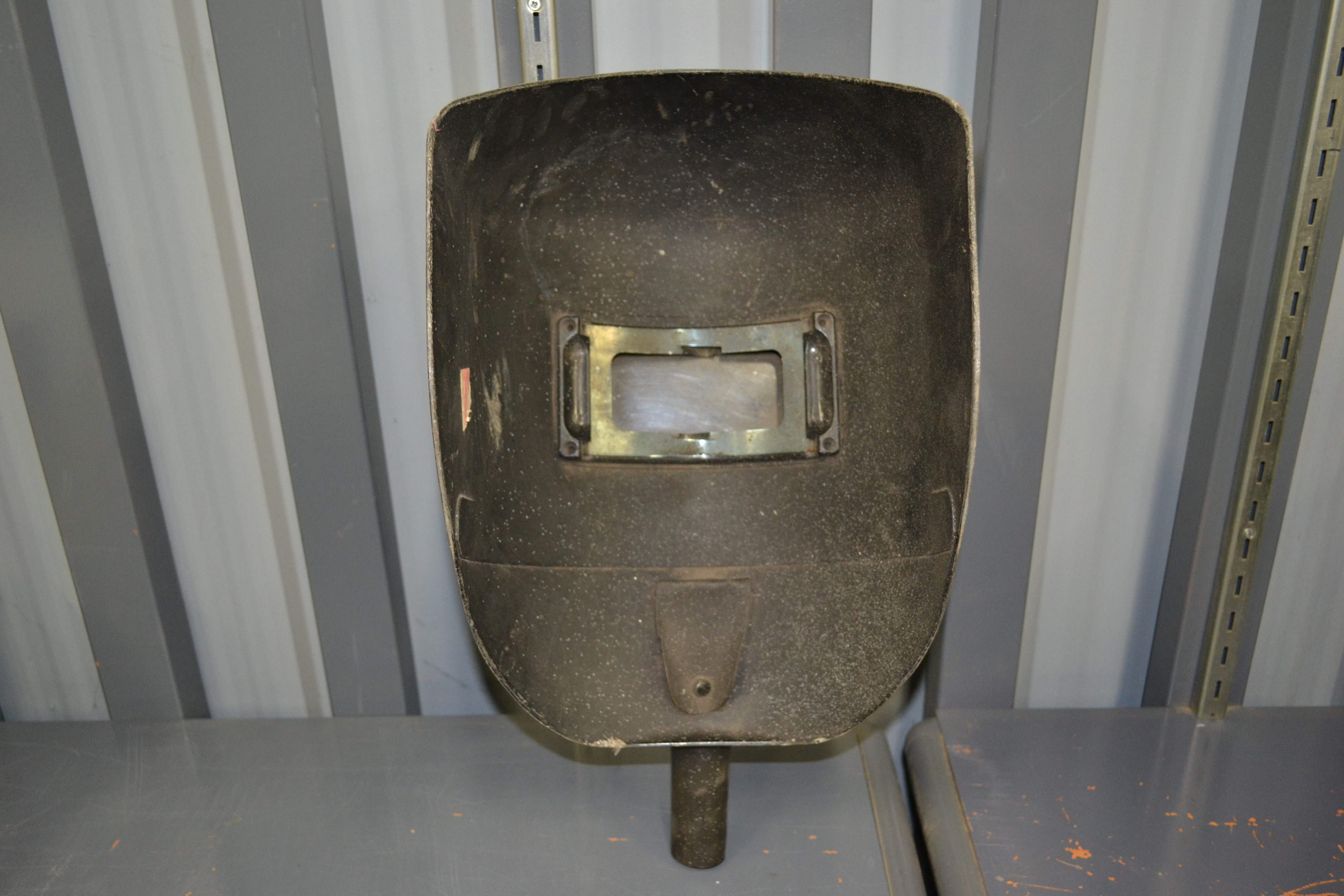 Hand held welding mask.