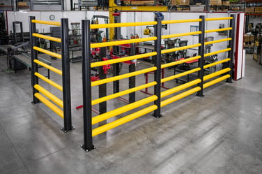 Ideal in situations where rigid, durable protection is needed. Examples include isolating open, exposed work areas, separating conveyors from pallet storage, and protecting workstations at loading docks.
