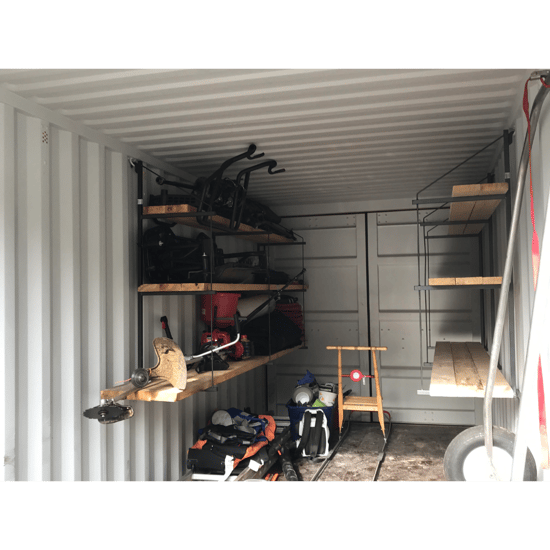 Make the most of your storage space by adding shelves to your shipping container.